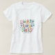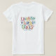 A t-shirt apresenta a frase "Rir em grandes pilhas" numa letra divertida e multicolorida. As cores podem ser um vibrante gradiente do arco-íris ou um padrão mais espalhado, semelhante a confetti. Esta design é perfeita para alguém que adora rir e divertir-se!