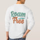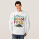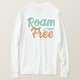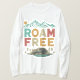 Um design de camiseta corajoso e colorido com a frase "Livre de roaming" em um espectro vibrante de cores. O texto aparece de forma destacada, talvez em um estilo um pouco angustiado ou esboçado, para criar um senso de aventura e liberdade na camisa.