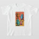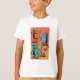 A design de camiseta apresenta uma imagem nostálgica e humorística: robôs antigos com formas boxy, antenas e poses engraçadas como dançar ou tocar um violão. Essa design evoca um sentimento de nostalgia pela cultura retrorista de ficção científica e robótica, apelando aos fãs da estética retrorreflectora e da cultura da pop.