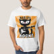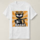 ROCHA DE GATOS NEGROS! Gato de Cartoon Preto Tocando Camisa De Guitarra. Este design de captura de olhos apresenta a gata de desenho animado Hilda the Kitten™ tocando guitarra com as palavras BLACK CATS ROCK! Design é colocado em um starburst laranja.