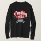 Camisa de ondulação má: a mensagem "está ondulando balança" na pia batismal groovy, com as vassouras de pedra e cruzadas abaixo dela. Debaixo daqueles é um tatuagem-tipo tribal forma.