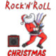 Papais noeis tocando violão e tocando através de um amplificador. Hora de Natal do Rock N Roll. Amplie seu feriado com este design de foguete.