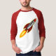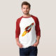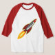 Um foguete retrô estilo 1940/50 explora em órbita, ou talvez na Lua ou Marte.