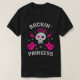 Um design bonito apresenta um crânio com olhos em forma de coração e duas guitarras elétricas cruzadas, e a citação "Princesa Rockin'".