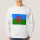 Esta design apresenta a bandeira romani, que é a bandeira internacional das pessoas romanichéis. A bandeira é constituída por um fundo azul e verde, representando os céus e a terra, respectivamente; contém também uma chacra vermelha de 16 raios, ou uma cartela, no centro, que representa a tradição itinerante das pessoas romanichéis e é também uma homenagem à bandeira da Índia. A bandeira foi aprovada pelos representantes de várias comunidades romanichéis no primeiro Congresso Mundial Romani (WRC), realizado em Orpington em 1971.