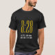 T-shirt moderna e na moda cristã, com uma grande tipografia amarela de 8:28 e branca. O texto diz BE AINDA E SABE QUE DEUS ESTÁ NO TRABALHO e se baseia nos versos da Bíblia cristã Psalm 46:10 e Romanos 8:28. O texto em branco é PERSONALIZÁVEL para que você possa substituí-lo pelo script real ou criar seu próprio texto inspiracional.