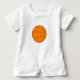 Este romper do bebê caracteriza um basquetebol na parte dianteira e o espaço para o nome do seu bebê e o número do jogador na parte traseira.