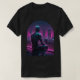 Immerse yourself in the profound solitude of the future with our "Rooftop Android City Gaze Tee." This captivating design features a humanoid android, its metallic skin gleaming with reflections of neon lights, as it sits thoughtfully on a rain-slicked rooftop. Gazing at a distant, glowing city under soft falling rain, the android conveys an emotionless yet deeply contemplative expression. The artwork masterfully blends retro-futuristic aesthetics with 80s tech elements and a dark, cinematic tone. Dominated by a cool magenta-blue palette, the detailed textures and mood-heavy lighting create a powerful visual narrative. This minimalist yet impactful composition is perfectly centered for apparel printing, embodying a unique retro sci-fi art style. It's an ideal choice for enthusiasts of cyberpunk, synthwave, futuristic art, or anyone who appreciates a design that sparks introspection and showcases the beauty of a melancholic future.