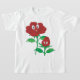Um casal de rosas vermelhas felizes com rostos sorridentes. Esta design parece realmente eficaz nesta camiseta