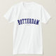 Verifique para fora este t-shirt de Rotterdam! É você de Rotterdam, Países Baixos? Você tem um amigo ou um membro da família que amem Rotterdam, Países Baixos? Em caso afirmativo, este t-shirt da "bandeira" é exatamente o presente que você está procurando! As características de design "Rotterdam" na rotulação arqueada do marinho na pia batismal clássica da faculdade.