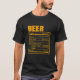 Camiseta Rótulo de Fatos Nutricionais de Cerveja Engraçado