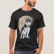 Esta camisa do Mens T mostra o meu desenho de um cão Rouco preto e branco contra um fundo preto, com a lua atrás, e uma vista de trás de um Rouco atrás. A camisa T é personalizável e a cor de fundo pode ser alterada para efeitos interessantes.