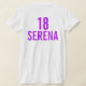 Púrpura brilhante, lilás e camiseta branca de 18ª festa de aniversário de lado duplo. Um design simples gráfico brilhante no qual você pode adicionar três fotos da sua aniversariante. Personalize esta árvore de aniversário com sua própria idade de aniversário e nome, a camisa de aniversário tem atualmente dezoito anos. Outros itens correspondentes estão disponíveis. Gráficos e design exclusivos por www.mylittleeden.com