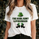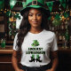 Celebrar Ruas. Dia de Patrick em estilo com esta camiseta "Luckiest Leprechaun" personalizável! Apresentando um design divertido com um chapéu de duende, botas e texto em negrito, esta camisa é perfeita para desfiles, festas ou visto festivo do dia a dia. Personalize o texto para o tornar exclusivamente seu e mostre o seu orgulho irlandês com talento!