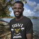 Vista a Rua de bandeira das Ilhas Virgens dos EUA. Croix USVI T-Shirt e mostre orgulho das Ilhas Virgens dos EUA vestindo a bandeira das Ilhas Virgens dos EUA como parte do seu traje durante carnavais, festivais, viagens ou apenas resfriamento.