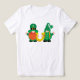 Entre na Rua. Espírito do Dia do Patrick com esta camiseta adorável com dois gnomos festivos segurando uma ferradura de sorte. Vestido em cores clássicas irlandesas com detalhes de shamrock, este design bonito e brincalhão é perfeito para celebrar no estilo. Uma escolha excelente para desfiles, festas, ou apenas espalhando alguma sorte extra!