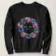 Adicione um toque de elegância a qualquer espaço com esta estonteante coroa personalizada apresentando flores ruivas e azuis. Perfeito para ocasiões especiais, decoração doméstica, ou presentes sinceros.