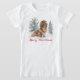 Vista alguma magia canina de Natal com esta deliciosa pintura de dachshund. A design apresenta uma ilustração em estilo aquarela de um adorável dachshund de cabelos longos, numa maravilha de inverno de neve e árvores verdes. A saudação "Feliz Natal" aparece debaixo da fotografia, em vermelho festivo brilhante. Com muito charme de férias, a camiseta de dachshund faz um presente de Natal ideal para amantes de cachorros de salsicha.
