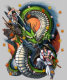 Samurai japonês vs Dragão design para mitologia japonesa e amantes folclóricos.