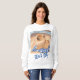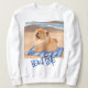 Um doce design para decoração e visto no verão. Pequeno corcunda está ficando bronzeado na praia com uma expressão felicidade em seu rosto.