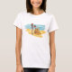Uma criança se divertindo construindo um castelo de areia de praia. Esta design parece muito eficaz nesta Camiseta das Mulheres
