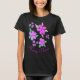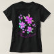 Camiseta na moda preta de manga preta para senhoras com flores cor-de-rosa brilhantes acentuadas com realeza, personalize o texto sempre florescente para qualquer mensagem, ou o texto é removível. Imagens de flores também são removíveis.