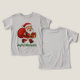 Cartoon Santa Claus carrying a big red sack filled with gifts, smiling and walking forward. A delightful design for wrapping paper, apparel, and Christmas gift.