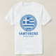 Santorini, Grécia branco de camiseta design angustiada com Grécia, com a bandeira nacional da dentro grega azul asteca, e o nome da ilha escrito em grego. Esta camiseta é ideal para você vestir enquanto está aproveitando suas férias na bela ilha grega de Santorini. Você também pode dar isto como um presente da Grécia para qualquer um que goste desta camiseta.