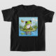 Um sapo ou sapo adorável sentado sobre uma almofada de lírios cercado por borboletas com seu reflexo na água. Sapo de desenho animado no estilo dos quadrinhos.