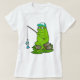 Camiseta Sapo como pescador com cana de pesca e peixe