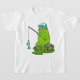 Camiseta Sapo como pescador com cana de pesca e peixe