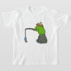 Camiseta Sapo da pedra na pesca com cana de pesca e peixe
