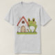 Design de camiseta estilo cartoon com um sapo feliz sentado com um sorriso grande e olhos redondos brilhantes. A expressão lúdica e alegre torna o design divertido, fofo e atraente perfeito para o visto casual e qualquer pessoa que ama sapos ou personagens de desenho animados esquisitos