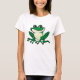 Um belo sapo verde olhando com grandes olhos. Esta design parece muito eficaz nesta Camiseta das Mulheres