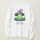 Chamando todos os fãs e amantes do sapo de chorona! Esta camiseta personalizada adorável apresenta um sapo verde giro sentado a esportar um chapéu roxo pontiagudo de bruxa. Perfeito para quem quiser adicionar um toque de magia e personalidade ao seu guarda-roupa, esta árvore gráfica tonta é certamente virada de cabeça.