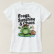 Sapo Vibes & Café T-Shirt é a sua dose diária de perturbação deliciosa. Apresentando um sapo alegre que se baseia em uma almofada de lírio com uma caneca de café a vapor, esta design combina perfeitamente a cutena de cottagecore com uma pequena loucura matinal. Ideal para amantes do sapo, entusiastas da cafeína, e qualquer um que prospera no sol e no caos — esta camiseta traz um conforto peculiar à sua vibração diária.