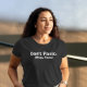 Aceite seu sarcasmo interior com nosso 'Não entre em pânico'. T-shirt. Esta camisa é a combinação perfeita de inteligência e simplicidade, apresentando texto branco em negrito sobre um fundo preto clássico. Quer você esteja enfrentando uma crise ou apenas navegando no caos diário, deixe esta camisa ser seu lembrete humorístico de que às vezes, é bom entrar em pânico, mesmo que você diga o contrário. Criado para conforto e estilo, é uma adição obrigatória ao seu guarda-roupa que certamente vira cabeças e brilha risos.