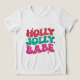 Natal Holly Jolly Mama Modern Glitter Script T-Shirts de Raparigas apresenta o texto "Holly Jolly Babe" em brilho moderno colorido em vermelho, verde e rosa. Perfeito para festas de Natal, feriados e festas festivas. Projetado por feriados do Evco www.zazzle.com/store/evcoholidays