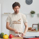 Diversão, "Se eu a mexer, considere caseira" tipografia com colher e coração. A design tem um bolo de chocolate em camadas com um pano de fundo de cobertura de chocolate escuro. Este design é para as camisetas de cor mais clara.