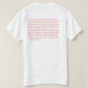 Transcrito completo da camisa: SE QUALQUER UM PEDE, EU ERA COM VOCÊ. Eu significo, que quereria pedir de qualquer maneira qualquer coisa sobre ele? Quem saberia? Alguém sabe? Alguém saberá? Sabem agora? O que são as possibilidades… hey, a prisão não será demasiado má, mim significa, você obtem alimentada, você obtem um companheiro de quarto agradável, você consegue ser alguém namorada… Que sou eu que falo sobre? Esta é conversa louca, ridículo absoluto. Talvez nós podemos fazer alguns amigos novos lá. E pelos "nós" mim significamos-me o e… Se eu estou indo para baixo, eu estou trazendo-o comigo. Eu sou certo que eu posso segurar um a sessenta anos de passeio engraçado. Permanecer lá para a vida não será assim que esfrie embora. Talvez é uma boa ideia começar levantar pesos ou começar fazer o karaté ou o algo. Você pensa que há bastante tempo para voar fora do país? Cuba seria aprovação que eu não supor… provavelmente nenhuma lei da extradição, mas a coisa comunista não seria assim divertimento. I've obteve-a! Nós podemos vender todas nossas possessões, transportar-se a Colômbia, pagar fora o governo colombiano, e transformar-se barões da droga! Não, essa coisa de esquerda inteira do grupo de guerrilha não será assim divertimento. Como sobre este, nós vamos a Arábia Saudita, os multimilionário tornados em uma exportação do ópio/óleo/braços arriscam-se, tome sobre o governo dos E.U. em um golpe militar e proclame a imunidade da acusação. Este material está conduzindo-me INSANO! Por que você trouxe este acima de qualquer maneira? Quem são você? Por que você está continuando a ler esta camisa? Você não não tem nada mais fazer? Nada? Realmente? Bem, de qualquer maneira, de volta ao ponto antes que você interrompeu RUDE, eu não pude tomá-lo anymore. Eu apenas sinto como eu estou indo explodir. Adeus pessoa que está lendo esta camisa. Adeus mundo. Adeus vida. Se eu falto, não me procure porque eu sou ido, IDO mim dizem o que, e nada pode me parar. Assim, eu era com você a noite passada, certo? Você está indo ter que tomar a queda nesta, aprovado?
