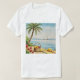 The painting is a watercolor painting depicting a peaceful, tropical beach scene.