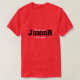 Camisa vermelha com o nome da escola impresso em branco, JUNIOR impresso em preto. PERSONALIZE a TI com seu nome, impresso em branco e Classe 20xx no verso.
