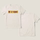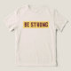 Faça uma declaração poderosa com esta camiseta BE STRONG. Com letras pretas em negrito contra um banner amarelo impressionante, este design minimalista transmite motivação, resiliência e confiança em um estilo limpo e moderno.