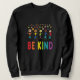 Be Kind design consiste em um grupo misto de muitas pessoas acima da mensagem "Be Kind" em cores do arco-íris. Uma imagem etnicamente diversa para sugerir e suportar gentileza entre todas as pessoas.