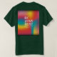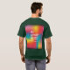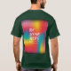 A design de camiseta apresenta um padrão abstrato vibrante em um arco-íris de cores, reminiscente de uma capa de super-herói. A frase "Seja o seu herói" aparece de forma proeminente em uma escrita ousada e manuscrita, encorajando os indivíduos a abraçar sua própria força interna e potencial. A combinação de padrões coloridos e a alta tipografia cria uma composição dinâmica e inspiradora.