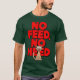 Uma frase ousada "Sem alimentação, sem atenção" em letras grandes, vermelhas, em bloco, com um gato cartoonista de olhos bem abertos e sua boca quebrada. O gato está sentado sobre um fundo azul.
