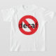 Camisa de mulher surda engraçada para bebedores de café. Regras de cafeína! Diga não ao café descafeinado. Parem o café da manhã. Acabar com o café assado. A palavra "descafeinado" é coberta por um símbolo vermelho proibido (círculo com uma linha que a atravessa). Diz "não" ao descafeinado.