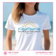 Comemore o verão, as férias ou o fim de semana feminino na praia com esta camiseta divertida com logotipo de sol e água, cores tropicais e texto personalizável. Esta design é minimalista e moderna, e você e seus namoradas irão olhar excelente na sua fuga de verão. Adicione um nome, evento, local, data ou outras informações para criar um presente exclusivo para você ou seus amigos.