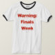 Seu cérebro insensibilizado, seus olhos é bloodshot, você é esgotado. Agora sua camisa advertirá pessoas cortá-lo alguma folga porque, apesar de tudo, é semana dos finais. 'Nuff disse. (Olhares melhores no branco ou no fundo luz-colorido se você decide mudar a cor da camisa)