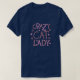Se você é loucos sobre gatos, este dizer engraçado do gato é para você! Os impressões minúsculos da pata do gatinho e os corações cor-de-rosa cercam o provérbio, "senhora louca do gato" na rotulação cor-de-rosa.